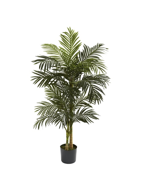 Nearly natural golden cane palm tree in pot 5'. Items may need to be re-shaped when removed from box. At Nearly Natural we believe in transparency. 2 trunks hold leaves to create an island-like feel.