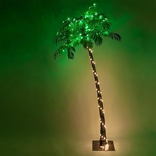 7ft lighted palm tree by ashland. It has green leaves which are decorated with bright LED light. Wintergreen Lighting Palm Tree Patio Lights String - Summer Patio String Lights Beach Themed Party Decorations Tropical Party Decorations Indoor F. Pre-Lit LED Palm Artificial Christmas Tree with Green Leaves and 96 LED Lights.